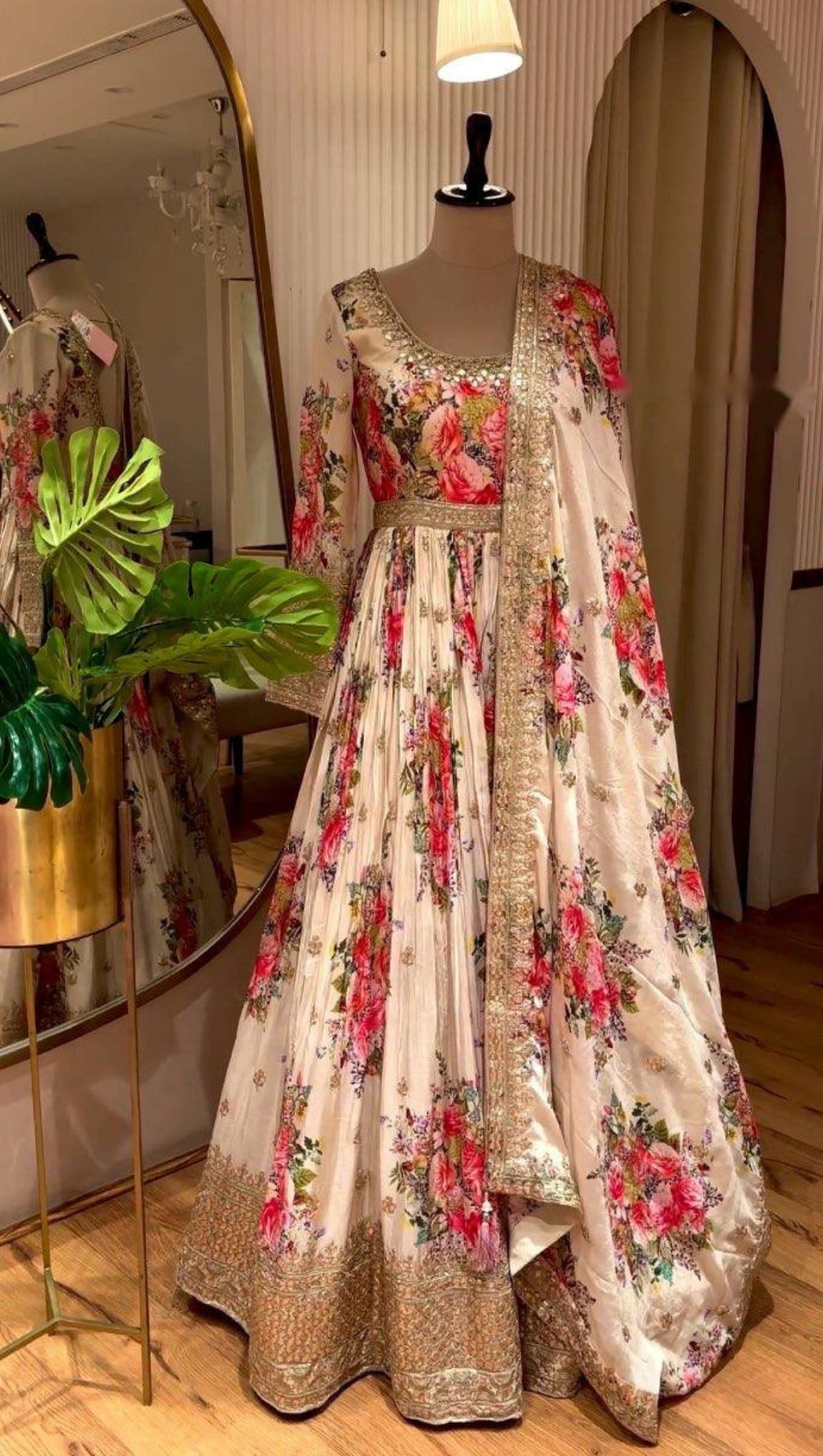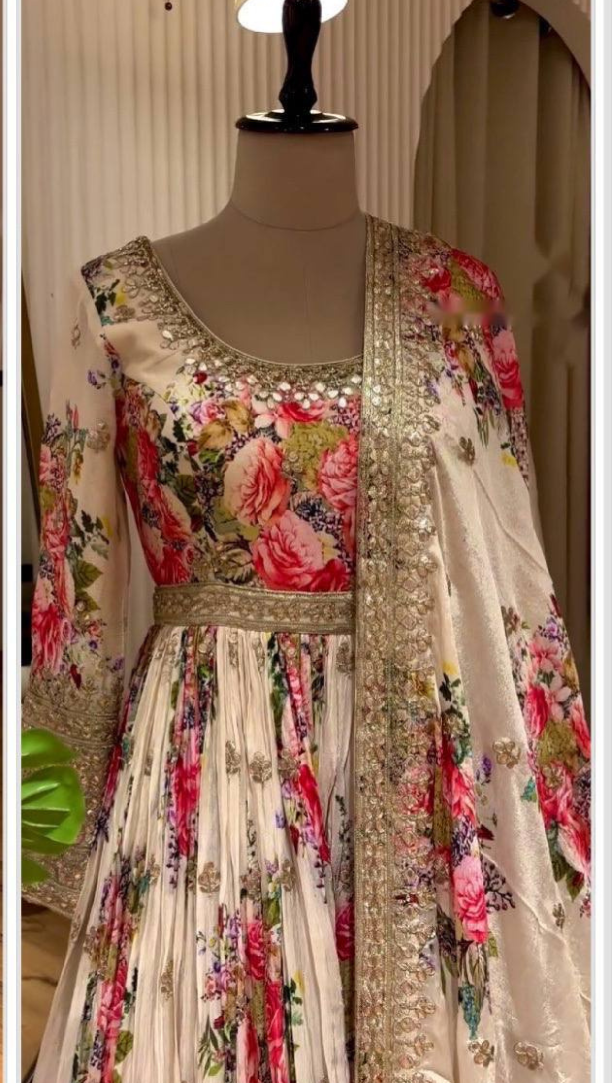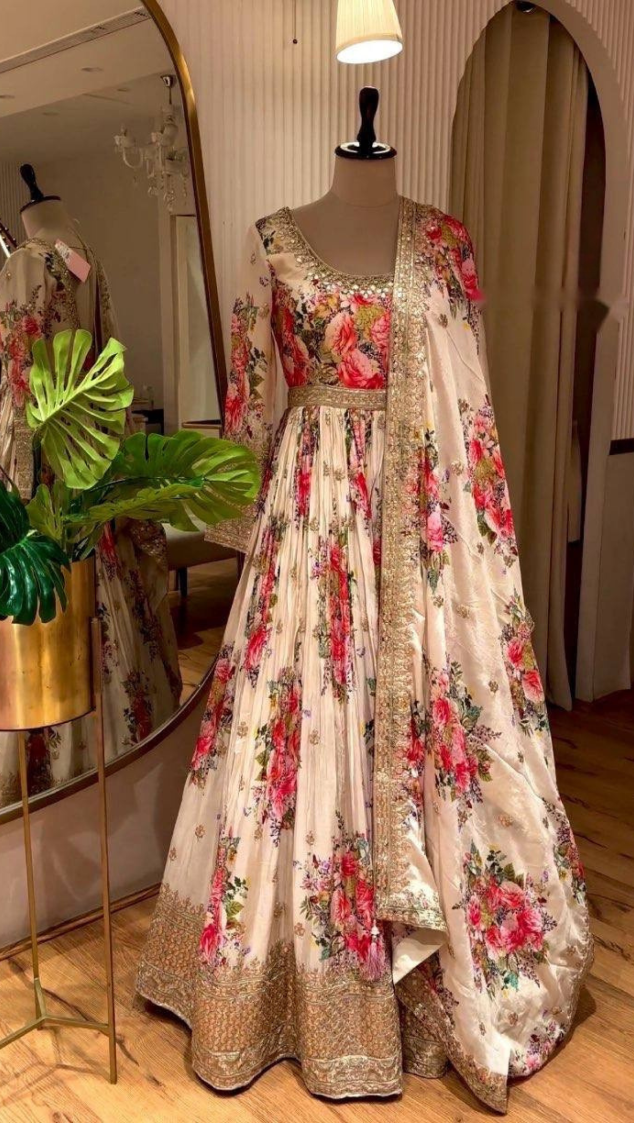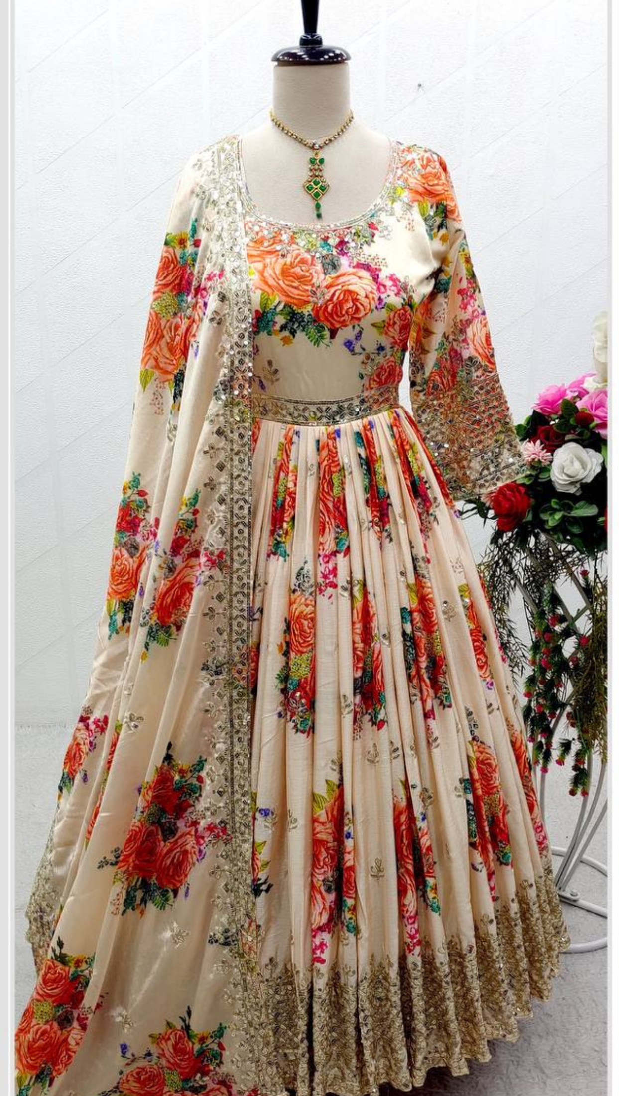 Heavy Satin Silk with Digital Print & 5mm Sequin Embroidery Work